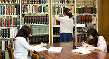 キャンパスの中心に位置している現在の附属図書館は、平成19年度より「ラーニング・コモンズ」と「キャリアカフェ」を設置し、それを機に文系理系の区別なく常時学生で賑わっている状況です。本学の「ラーニング・コモンズ」は国内でもっとも早期に実践した例として広く知られ、見学に訪れる大学関係者も少なくありません。また、いちはやく未公開の学術書を「E-book」として公開したことにより、平成25年度、国立大学図書館協会賞を贈られております。