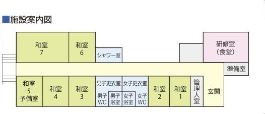 収容人員は28名で、宿泊室(6室)、研修室(食堂)等があります。