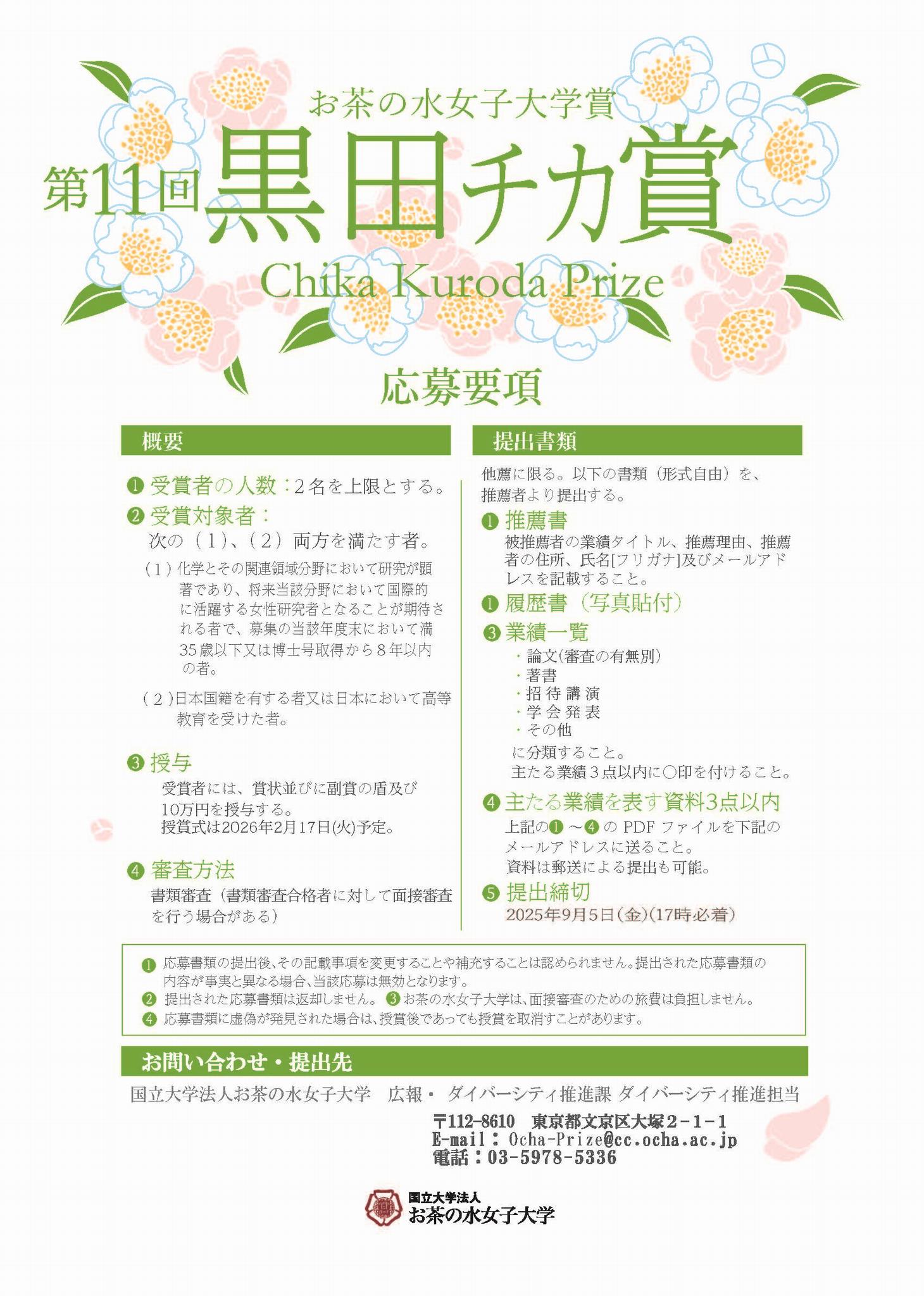 お茶の水女子大学賞:第11回黒田チカ賞募集要項