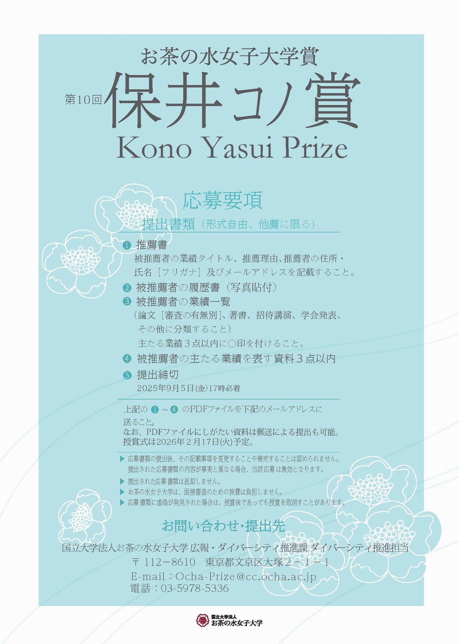 E-mail:Ocha-Prize@cc.ocha.ac.jp