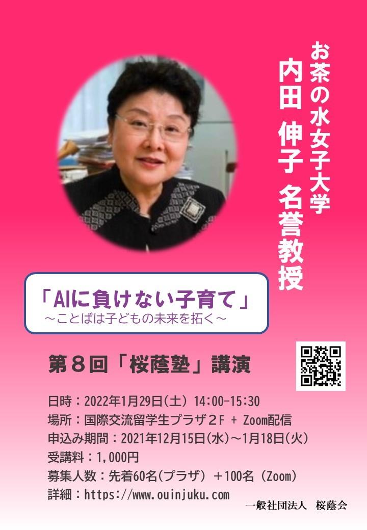 2021年度文化功労者に選出されました内田伸子先生のご講演を2022年1月29日(土)に開催いたします。