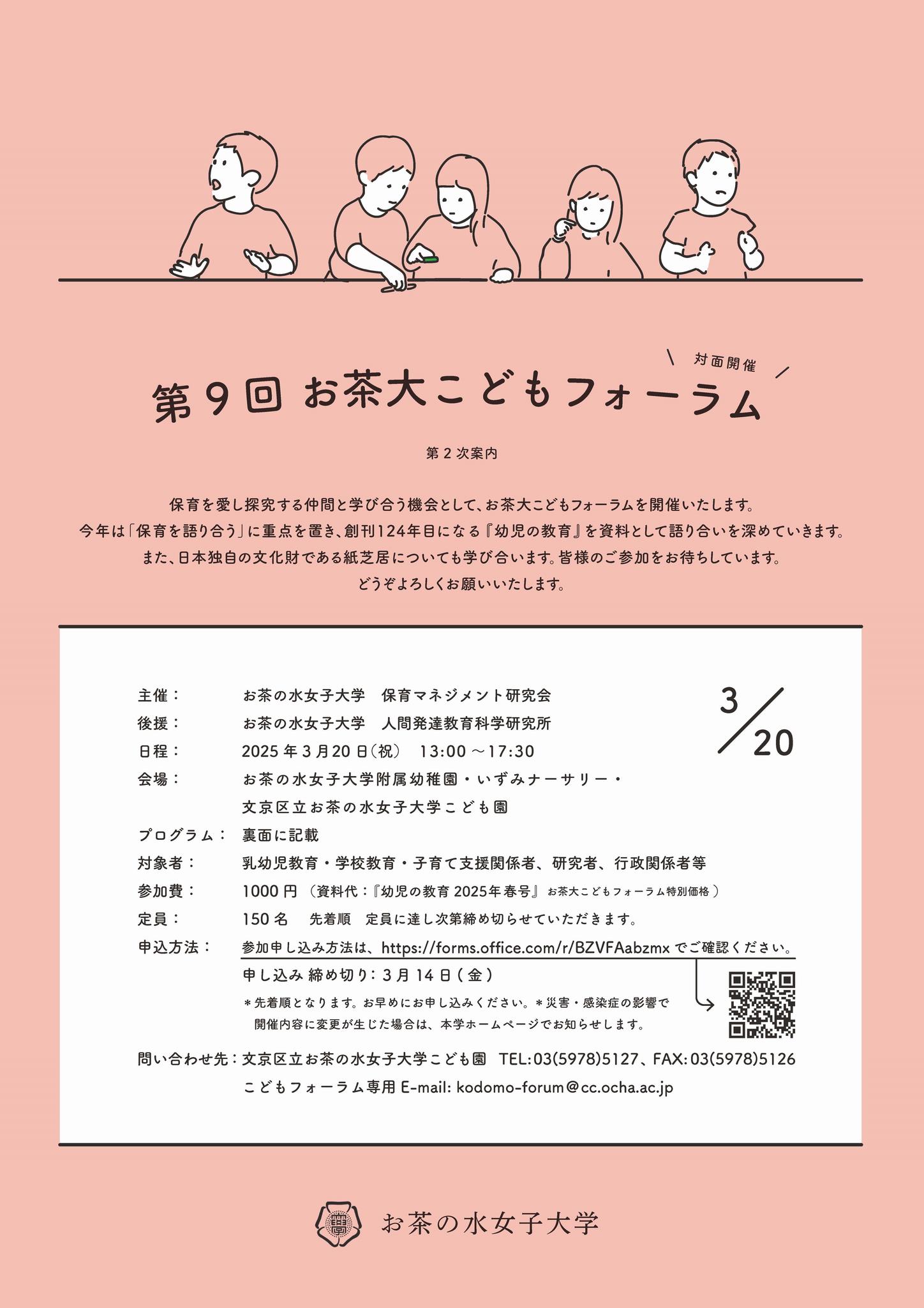 保育を愛し探究する仲間と学び合う機会として、お茶大こどもフォーラムを開催いたします。
