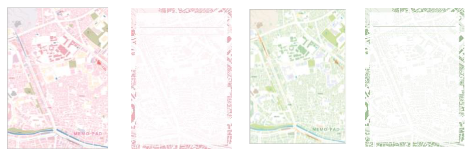 A6サイズ80枚のメモ帳。表紙とともに、中紙にも地図を薄くあしらいました。