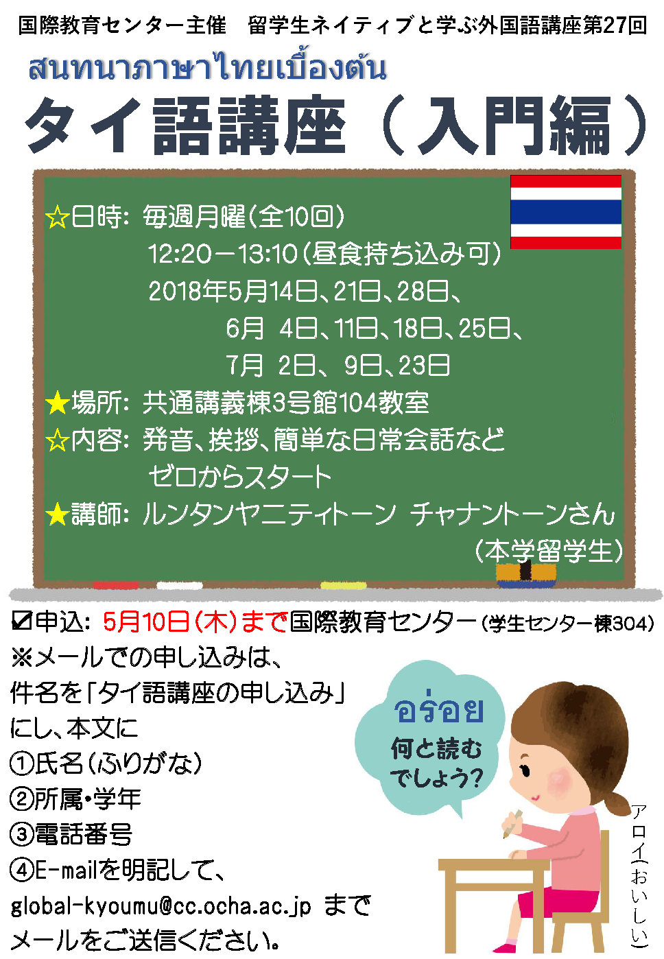 | 問合先 | お茶の水女子大学 国際教育センター E-mail:global-kyoumu@cc.ocha.ac.jp |