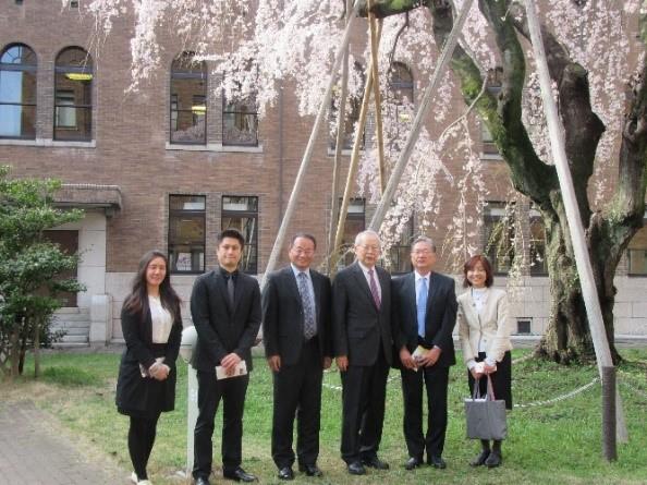 また、キャンパスツアーにおいては、台湾出身の留学生も同行し、歴史資料館の展示物の紹介や大学講堂を案内するとともに、満開の桜の下で記念写真を撮影し、和やかな雰囲気の中で交流を深めた。