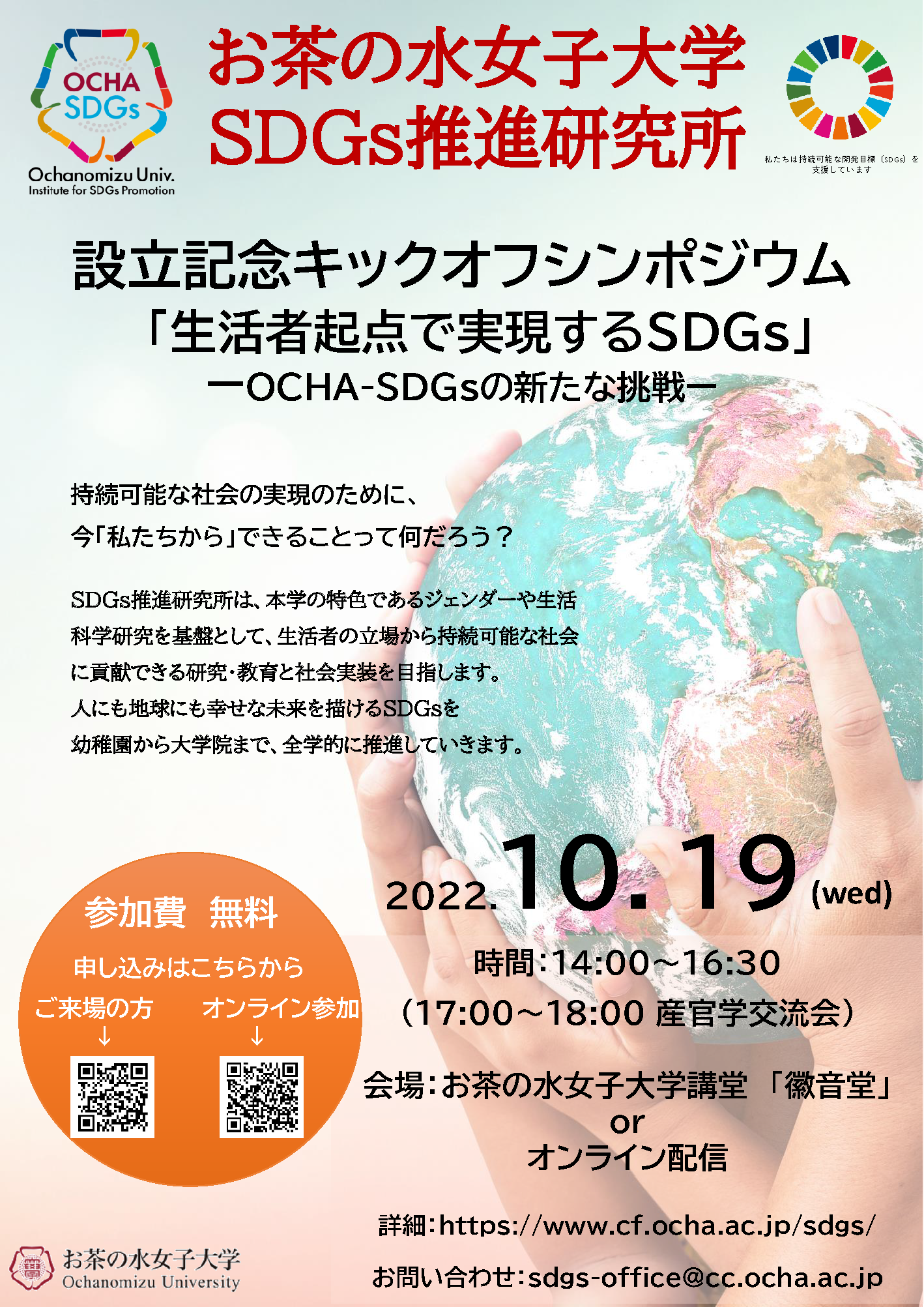 | お茶の水女子大学SDGs推進研究所設立記念キックオフシンポジウム 「生活者起点で実現するSDGs」-OCHA-SDGsの新たな挑戦- |