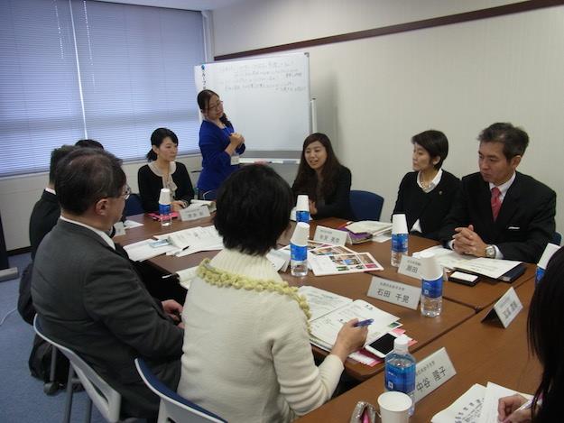 お茶の水女子大学は平成24年度より文部科学省「産業界のニーズに対応した教育改善・充実体制整備事業」に首都圏18大学と連携して取り組んでおり、第1部は大学の関心が深い「採用時に企業が求める人材像」をテーマに本学教職員から25名、各界の主要企業10社から採用担当者12名が3つのグループに分かれて討議を行い、本学側は最新の企業の採用活動や人材ニーズ、また企業側は就業力育成等の大学の最新のキャリア教育の取組についての相互理解を深める機会となりました。